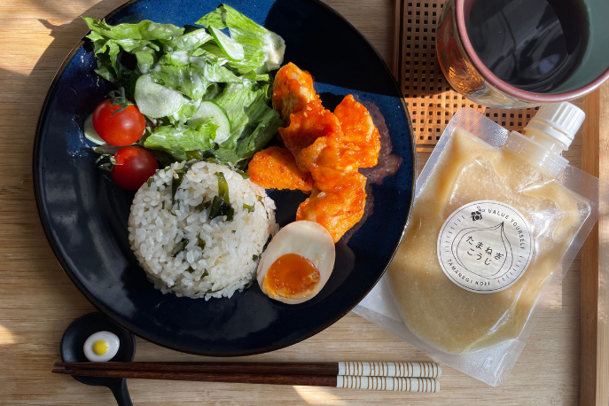 私自身も、人気No.1の「たまねぎ麹」で、Instagramでも紹介されている、わかめご飯、とりマヨネーズ、レタスサラダを作ってみました。炊飯器を開けた瞬間、ふわっとやさしい香り。調味料はたまねぎ麹だけで、あっという間にワンプレートが完成! 忙しいけれどもこどもに栄養も取らせたい!と考えるお母さんの救世主のような存在です。偏食気味な4歳の息子も「おかわり!」と大喜びで完食してくれました。