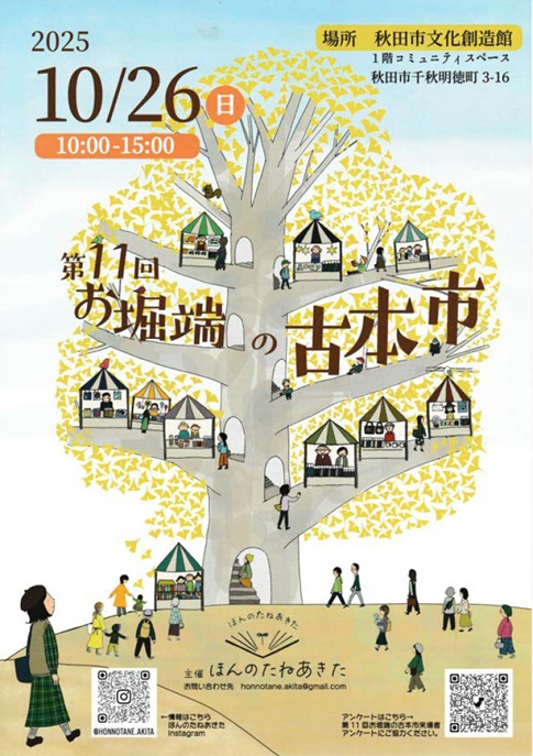 店主・星々さんが実行委員を務める「第11回 お堀端の古本市」が10月26日、秋田市文化創造館で開かれます。「ちいさな書店 星々」の棚主になっている出展者に実際に会えるチャンスです。