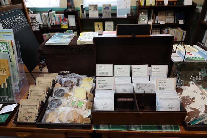 「ちいさな本屋 星々」はJR秋田駅東口から徒歩で10分ほど、手形の住宅地にあります。店内は濃い茶色にまとめられた本棚が並び、古本と新刊合わせて約1200冊が収められています。棚の多くは区画ごとに棚主がいて、棚主が選んだ古本などを並べる「シェア型書店」となっています。棚ごとの小さなお店が集まっているスタイルで、品ぞろえは個性豊か。本だけでなく、コーヒーやハーブティー、焼き菓子、アクセサリーなども並べられています。