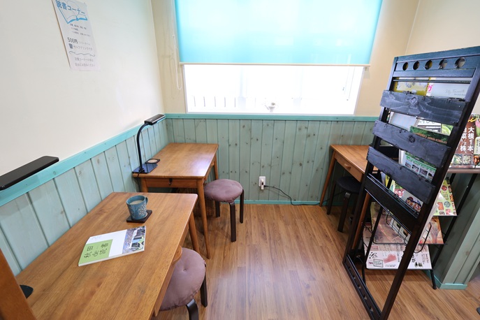 店内の一角には読書コーナー(有料)があります。セルフドリンク付きで、読書や学習、編み物などにも利用できます。ひとりの時間を楽しみたい方にオススメです。