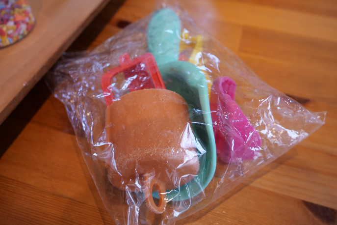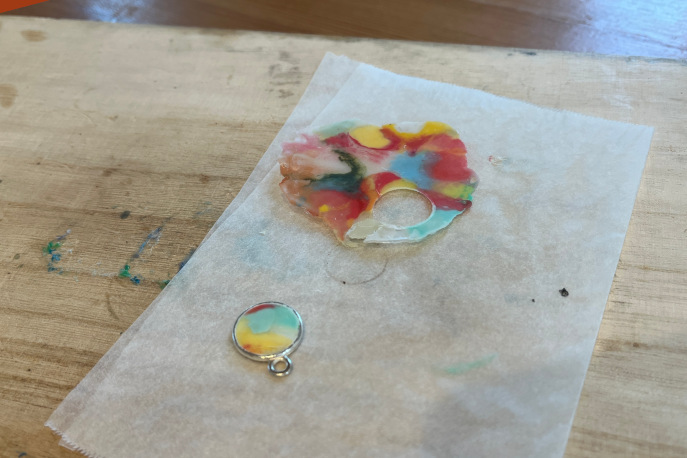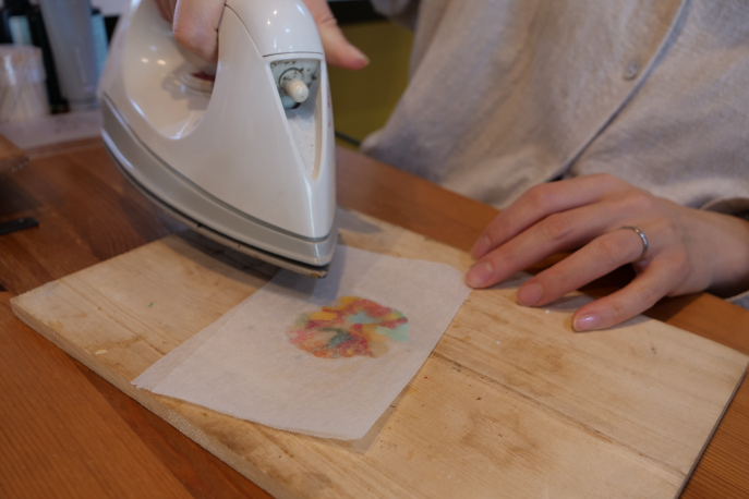 1.粉砕したプラスチックをクッキングシードなどで挟み、アイロンをして丁寧に溶かす。
