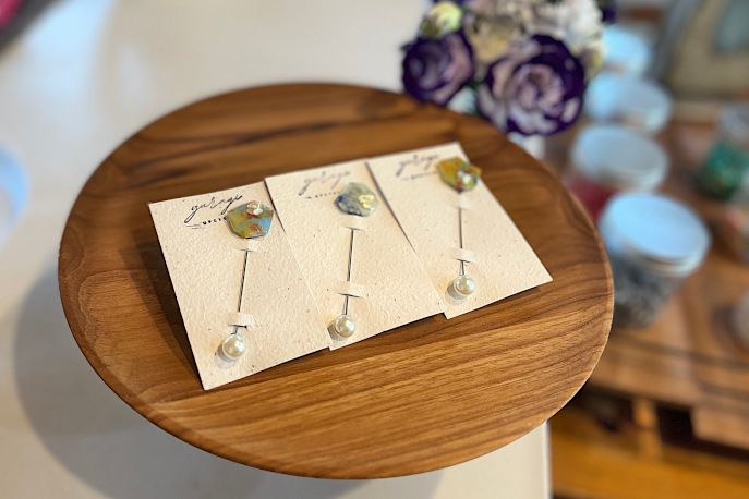 yuragiの作品には、「自分が好きなものを作りたい」という、作者のこだわりが込められています。制作技術をオンラインで学び、約1年前から販売を開始したyuragiのアクセサリー。各地のマルシェにも積極的に出展し、ワークショップなども開催しています。「自分の想いや活動を理解してくれる人に届くと嬉しい」と、制作意欲が増すそうです。