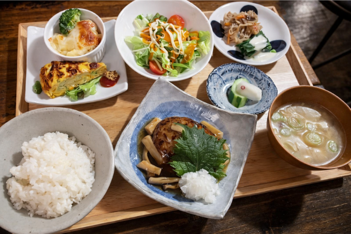 喫茶久吉のランチは、見た目にも楽しい“彩り”が特徴。切り干し大根のほっとする煮物やアスパラ菜など、季節の食材もさりげなく使われています。「できるだけ、いろとりどりになるように」そんな佐々木さんのこだわりが、一皿一皿に込められています。ランチのメニューは毎月変わるので、Instagram投稿をぜひチェックしてみてくださいね。